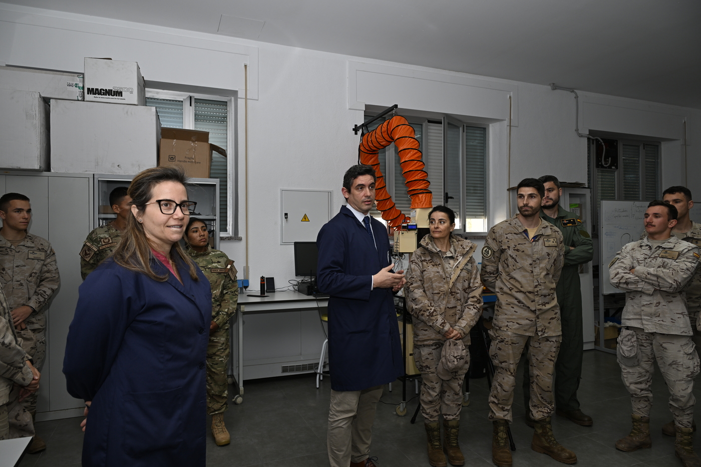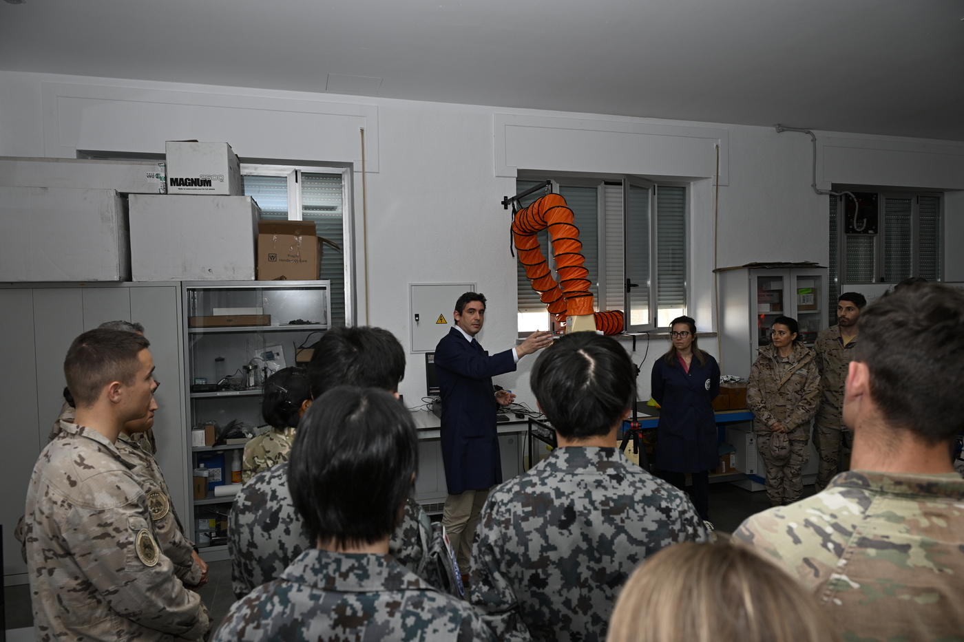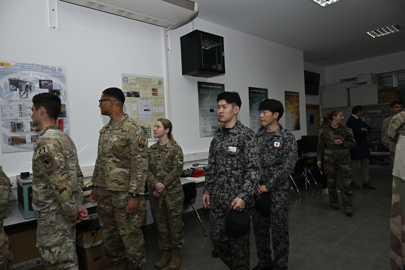 Delegaciones de oficiales y alumnos pertenecientes a las Fuerzas Armadas de Perú, Alemania y Francia, entre otros países visitaron la Academia General del Aire y del Espacio en San Javier con motivo de la “International Week 2026”. Durante dicha vista, la comitiva acudió al Laboratorio de Mecánica de Fluidos Aplicada del Centro Universitario de la Defensa, concretamente a la instalación experimental del túnel de viento, donde los profesores Doctores D. David S. Martínez Hernández y Dª Elisa Pescini presentaron diferentes actividades realizadas en dicho laboratorio por los alumnos del Centro Universitario de la Defensa como la visualización del flujo mediante líneas de humo sobre un perfil alar a dos ángulos de ataque diferentes uno con flujo adherido y otro con flujo separado.